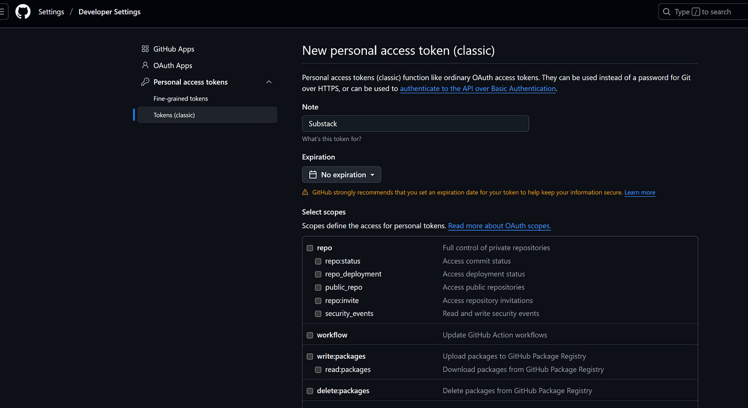 git remote add origin https://ghp_KZoqYXIQKxxxxxxxxxxxxxxxxxxx@github.com/YYYYY/substack.git