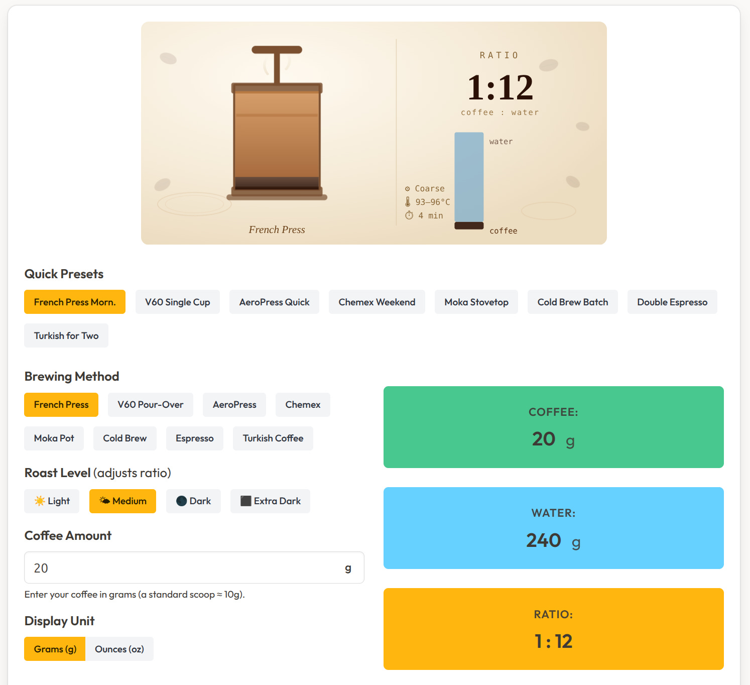 → Try the Coffee Brew Ratio Calculator on riatto.ovh