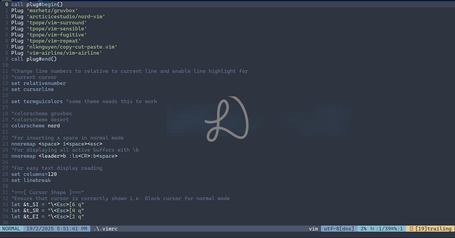 This displays a useful convenient airline at the bottom of the vim screen that displays relevant information. Why airline? The information displayed can be useful for editing.