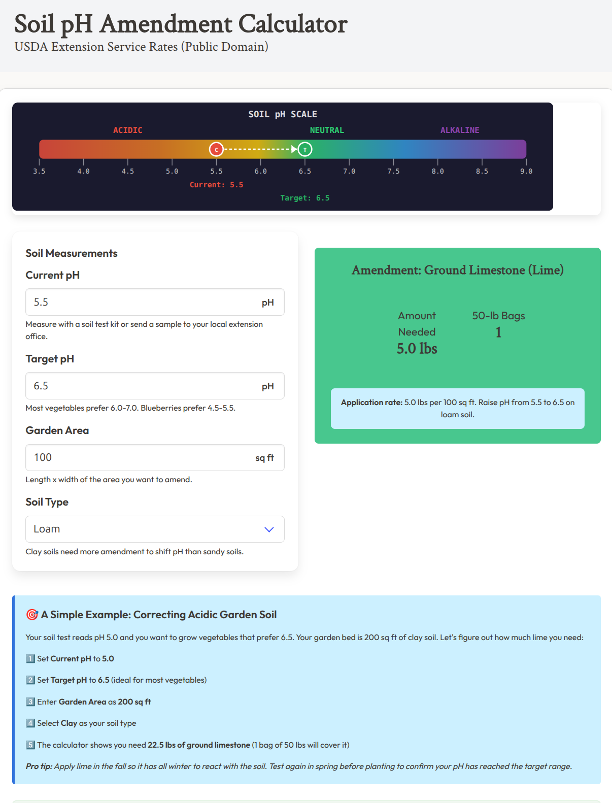 → Soil pH Amendment Calculator — get your soil baseline right before you plant